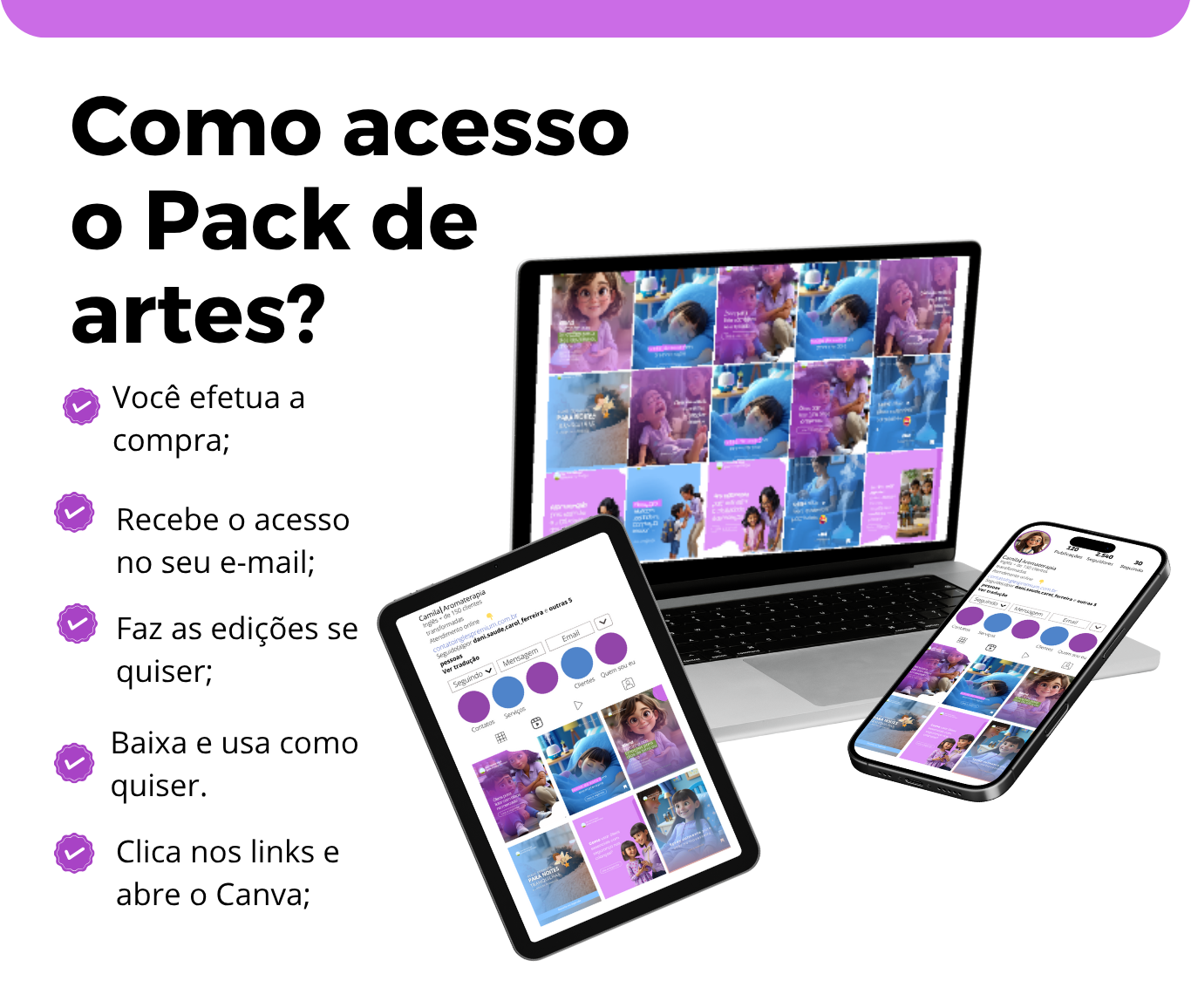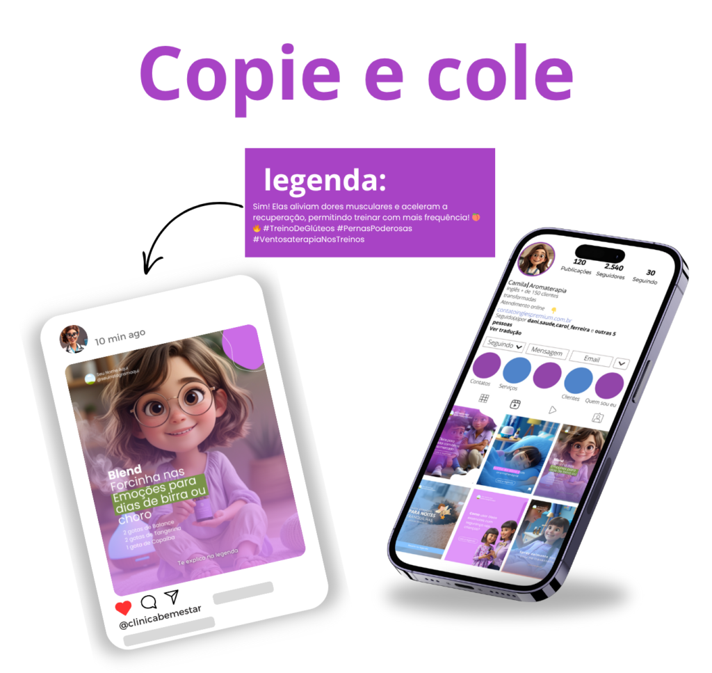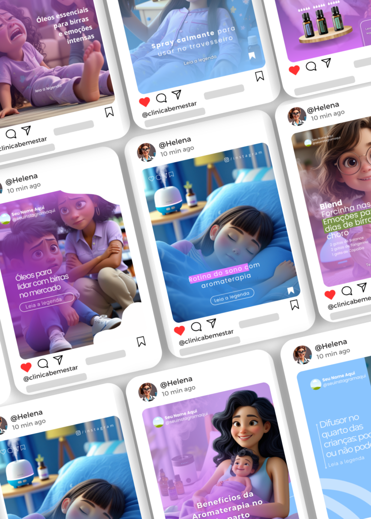 Sim! Basta você baixar o aplicativo do Canva e acessar o PACK Aromaterapia Infantil por lá para criar suas postagens direto pelo seu celular.