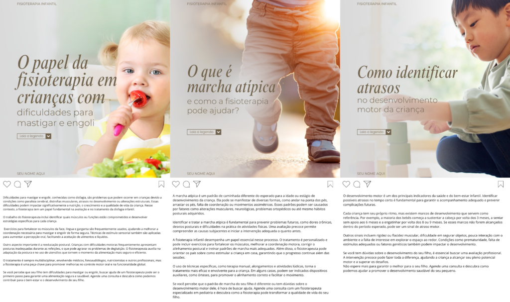 Fisioterapeuta Infantil, copie e cole nossos conteúdos prontos no seu perfil e divulgue seu trabalho de forma profissional!
